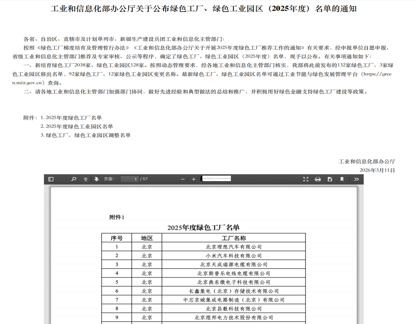 近日,国家工业和信息化部正式公布2025 年度国家级绿色工厂、绿色工业园区名单,英国上市公司365凭借在绿色制造体系建设、能源高效利用、清洁生产、资源循环利用等领域的卓越实践与突出成效,顺利通过严苛评审,成功入选并荣获国家级 “绿色工厂” 称号。